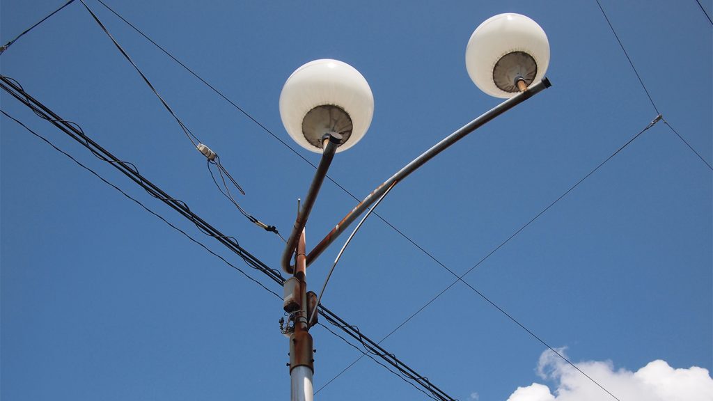 すず陶とありしま矯正歯科の間の道を通って犬の美容室ビビアンの前にあったのはこちらの街灯。