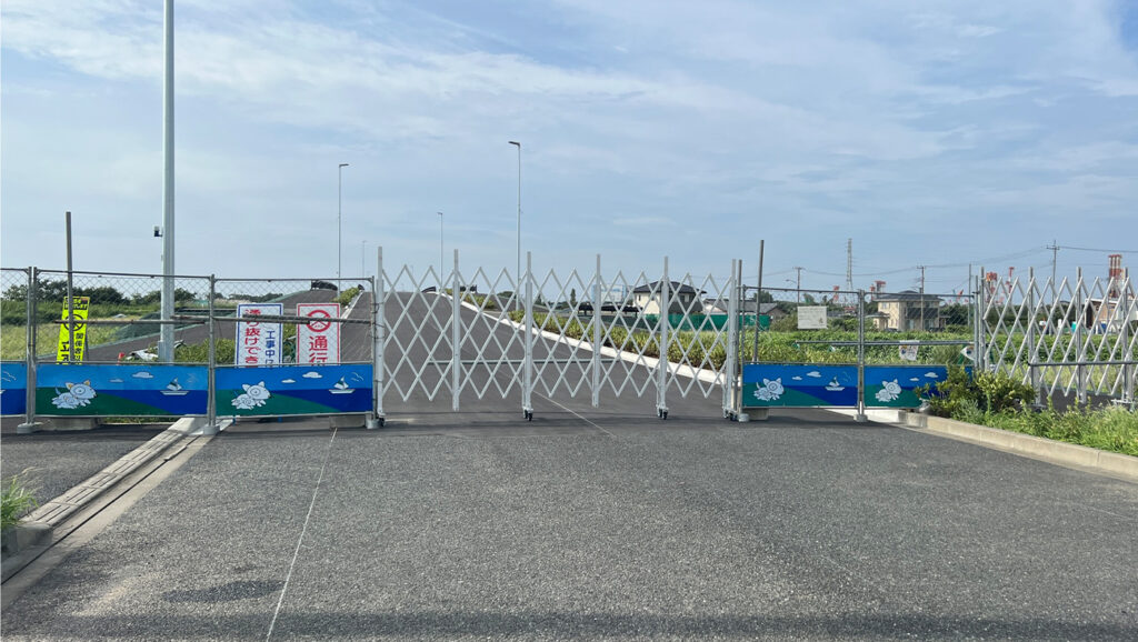 バリケードを背に直進すると、袖ケ浦海浜公園へ続きます。
