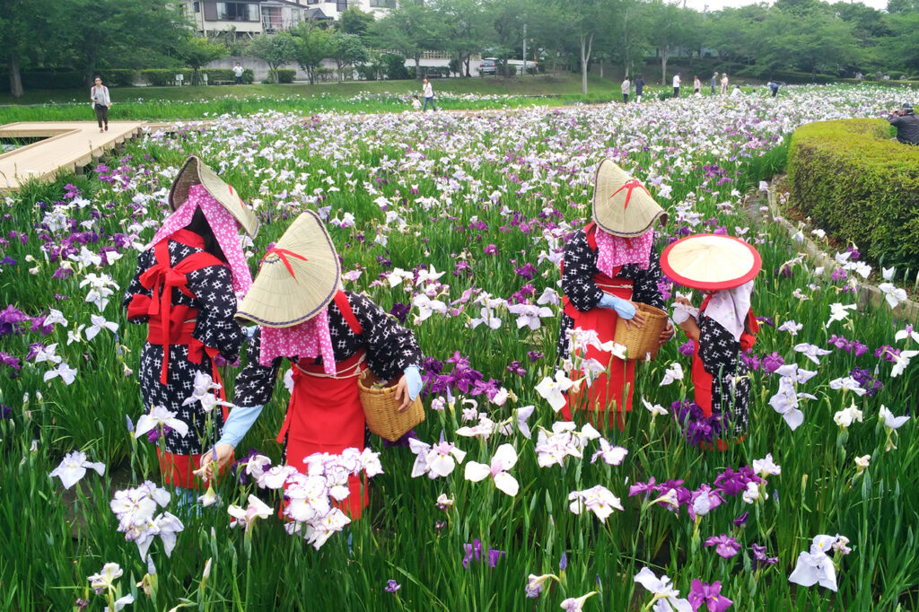 期間内は飲食露店やキッチンカーなどが出店し、10日(土)はガウラや花摘み娘による花ガラ摘みの実演、花菖蒲絵柄の太巻寿司・赤飯などの販売も行われます。