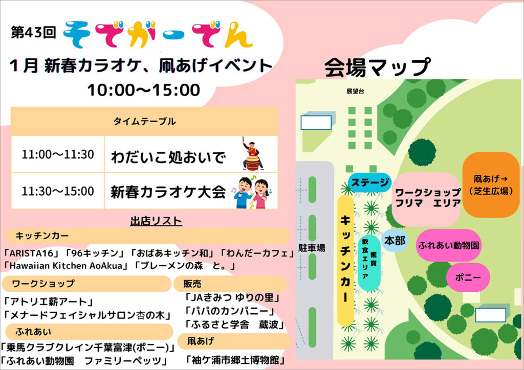 今回のテーマは「新春カラオケ大会」と「凧あげ大会」。