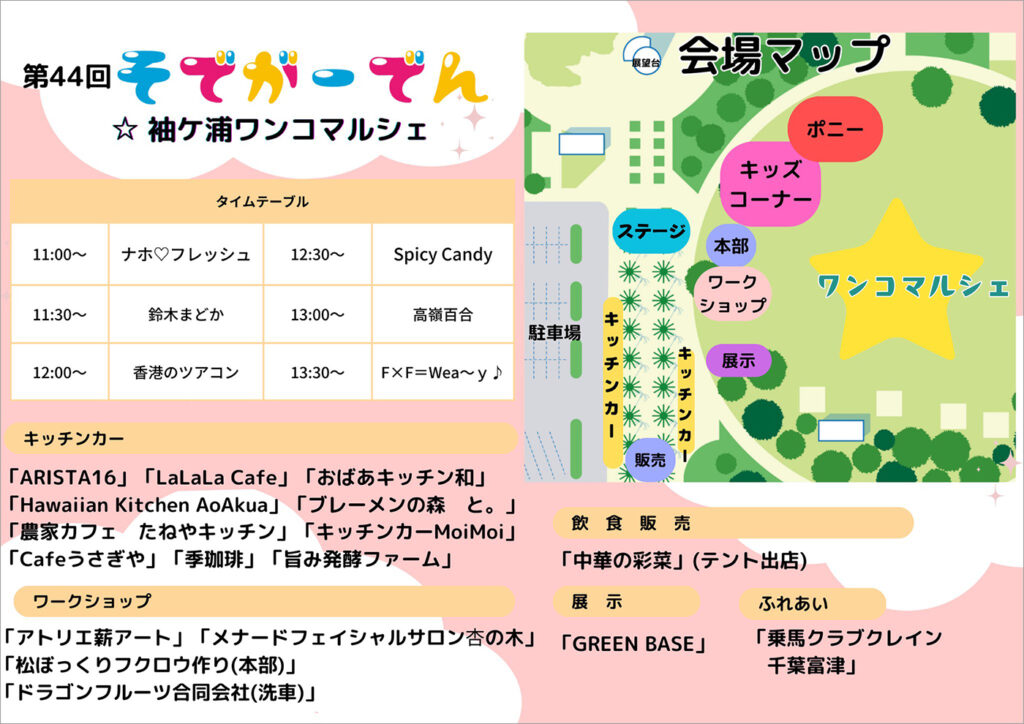 袖ケ浦市南袖にある袖ケ浦海浜公園にて、月いちマルシェ「そでがーでん」が開催されます。