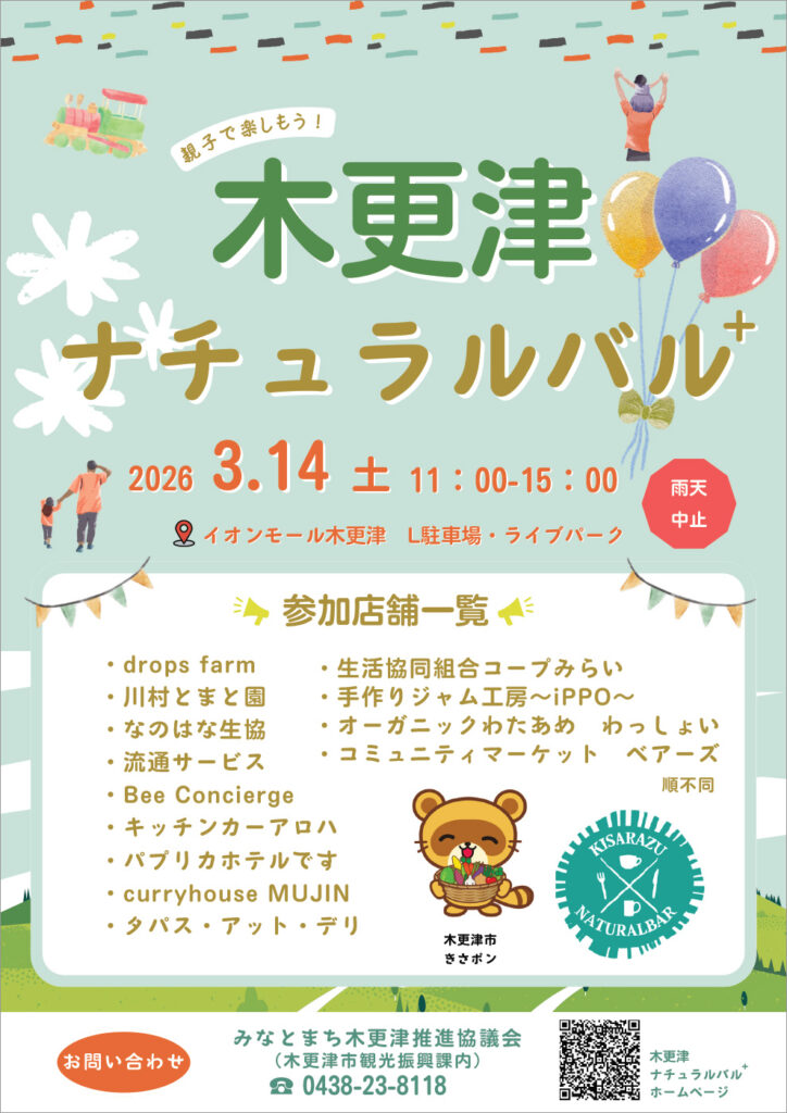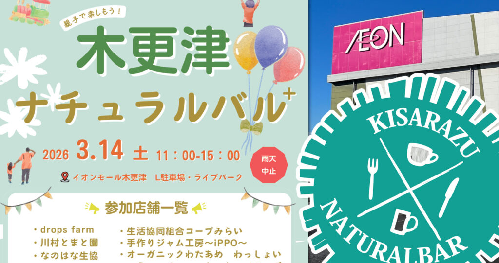 木更津市では、安心・安全・無添加な食材にこだわった飲食を中心に提供するお店に、農水産物の販売や「食」に関するワークショップなどを加えリニューアルした「木更津ナチュラルバル⁺」を開催します。