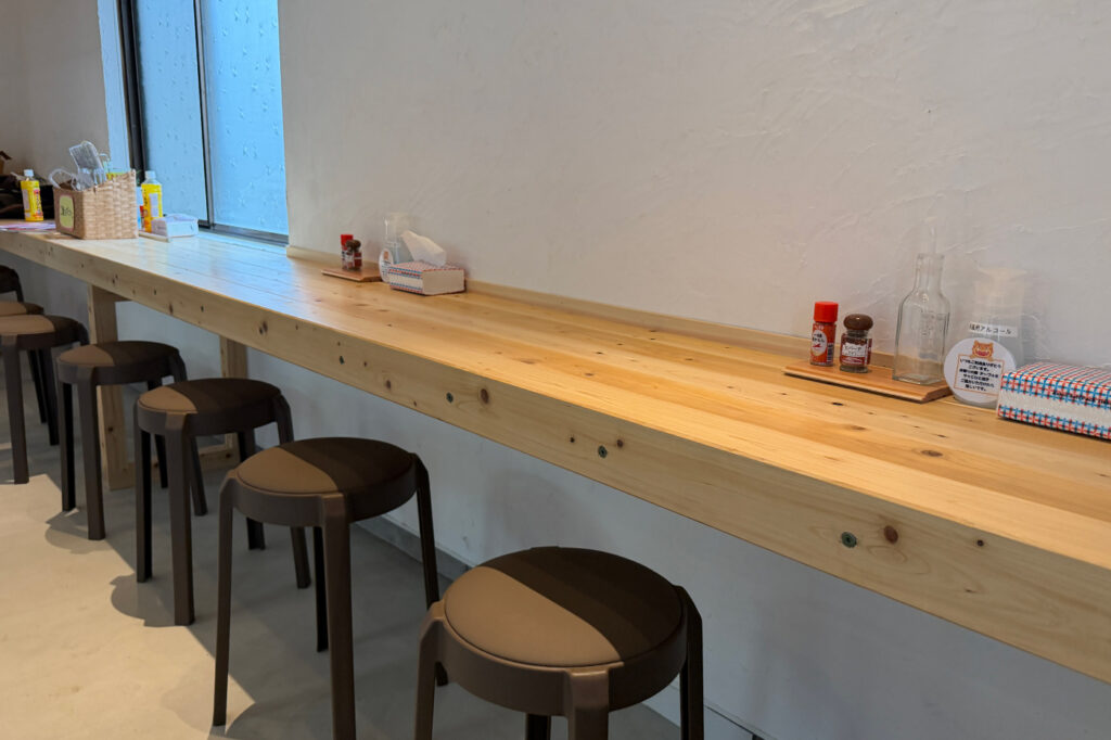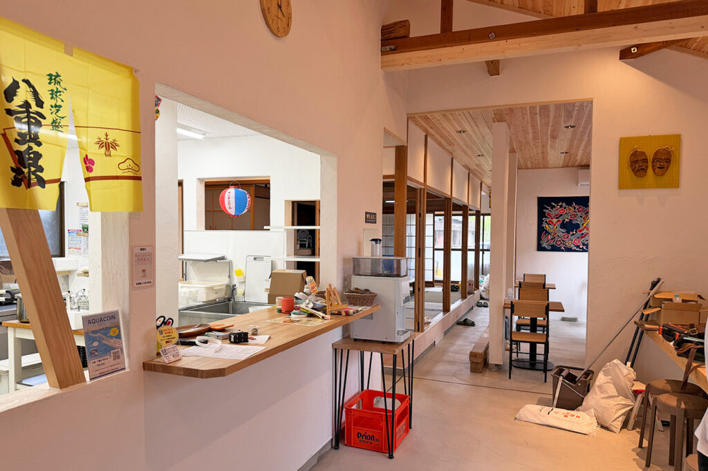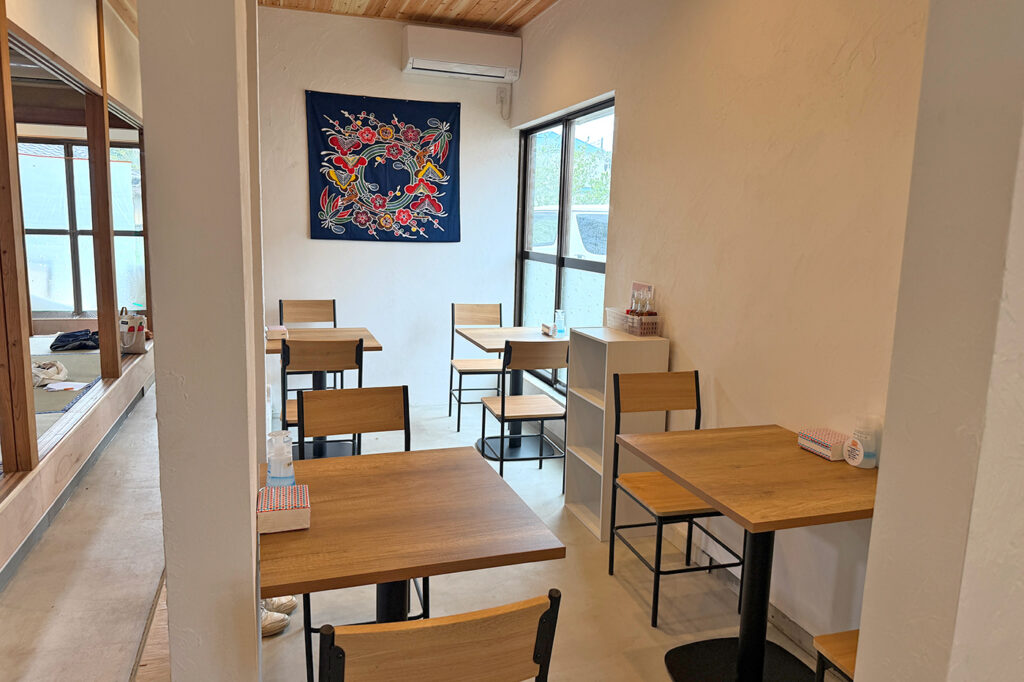 お店は民家をリノベーションしたもので、白い漆喰の壁が印象的な明るい店内です。柱や梁を活かし、どこか懐かしさを感じる空間に仕上がっています。