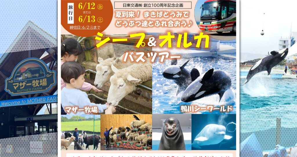 日東交通では、マザー牧場・鴨川シーワールドを巡る「シープ&オルカ バスツアー」を開催します。